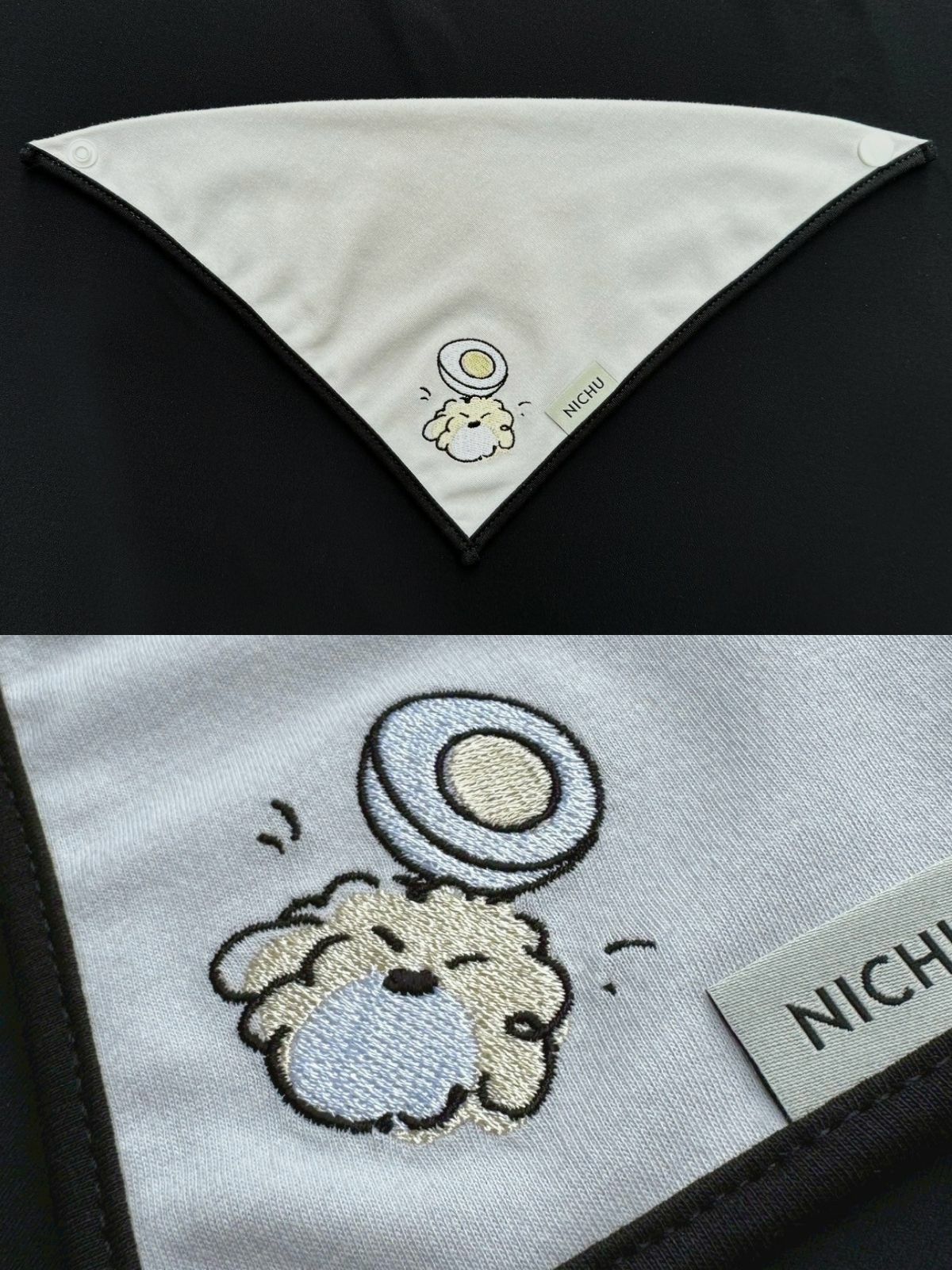 簡約中藏細節,柔軟包覆每一份陪伴。選用天然有機棉製成,結合抑菌機能與溫潤觸感,守護毛孩每日貼身的舒適,滾邊細緻包縫,搭配俏皮滷蛋刺繡。