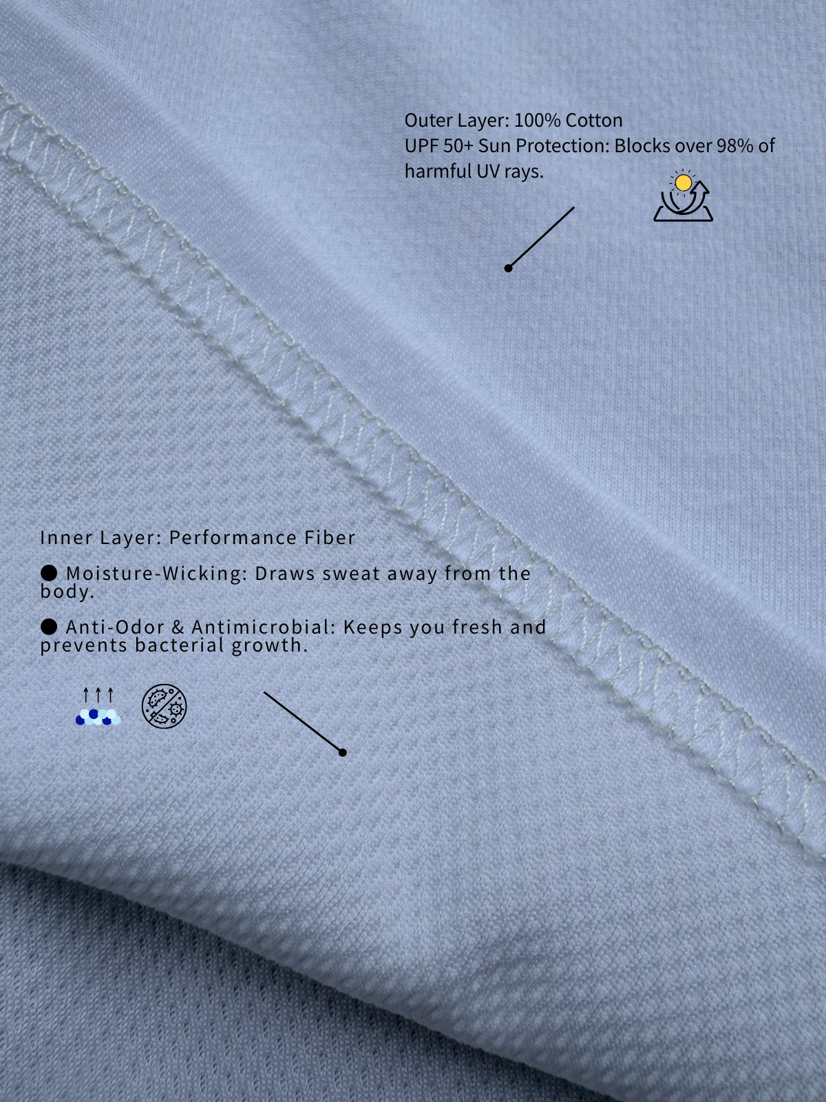 Note: Washing your garments with cold water and using a gentle spin cycle helps protect the performance fabric. This method helps maintain the color, shape, and quality of the material.