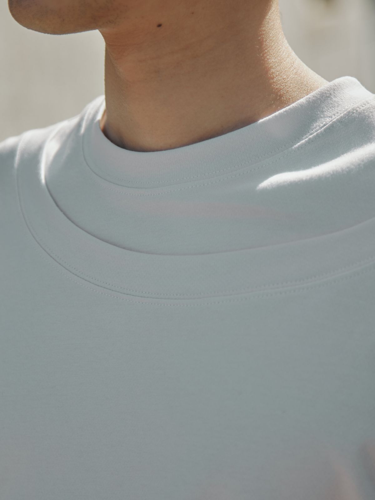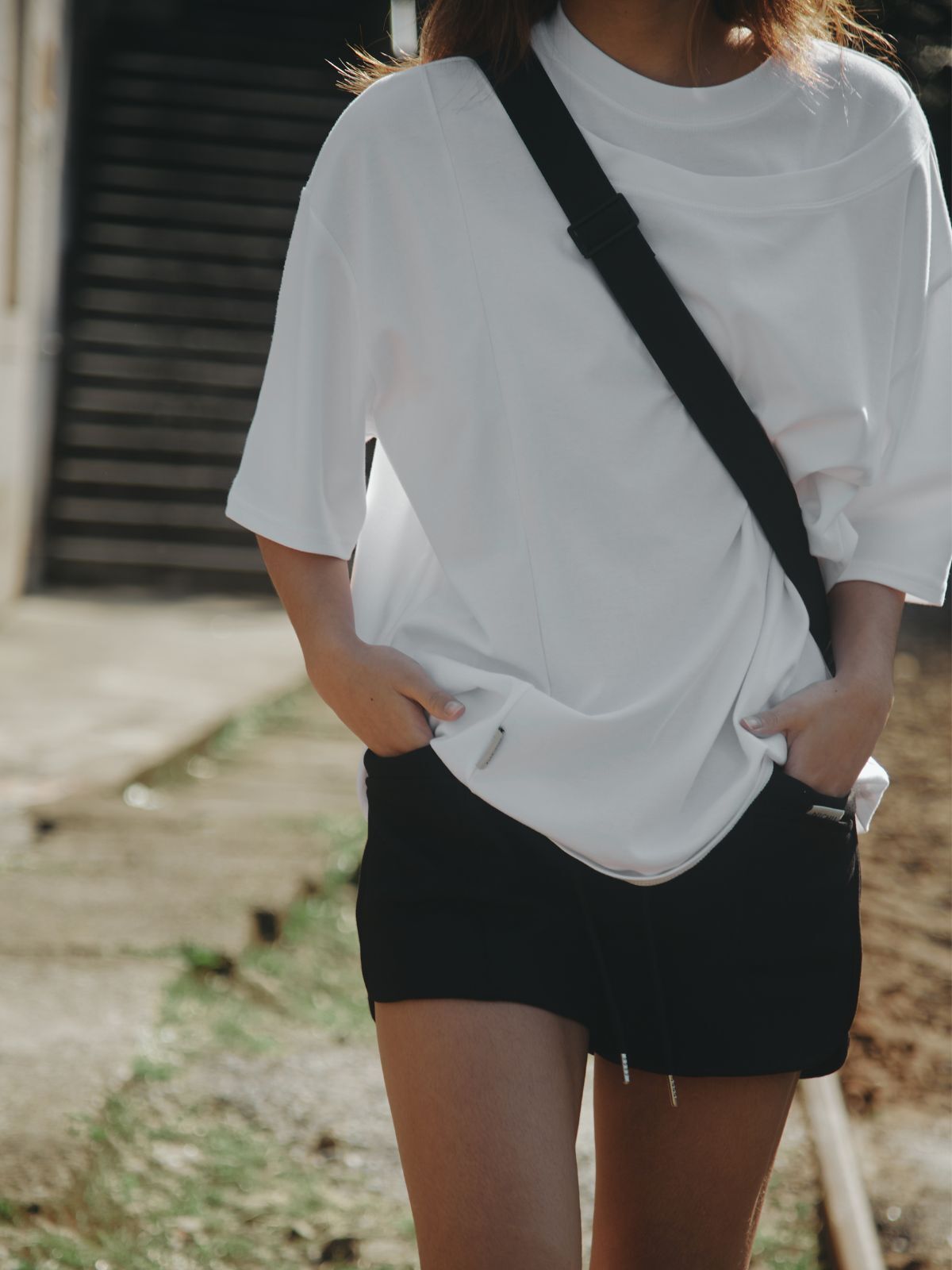 低調卻暗藏巧思,假兩件式領口層次設計,營造出不費力的視覺重點,無須多餘搭配即可展現穿搭深度,提供給喜歡簡約但不喜歡無聊的穿搭愛好者。