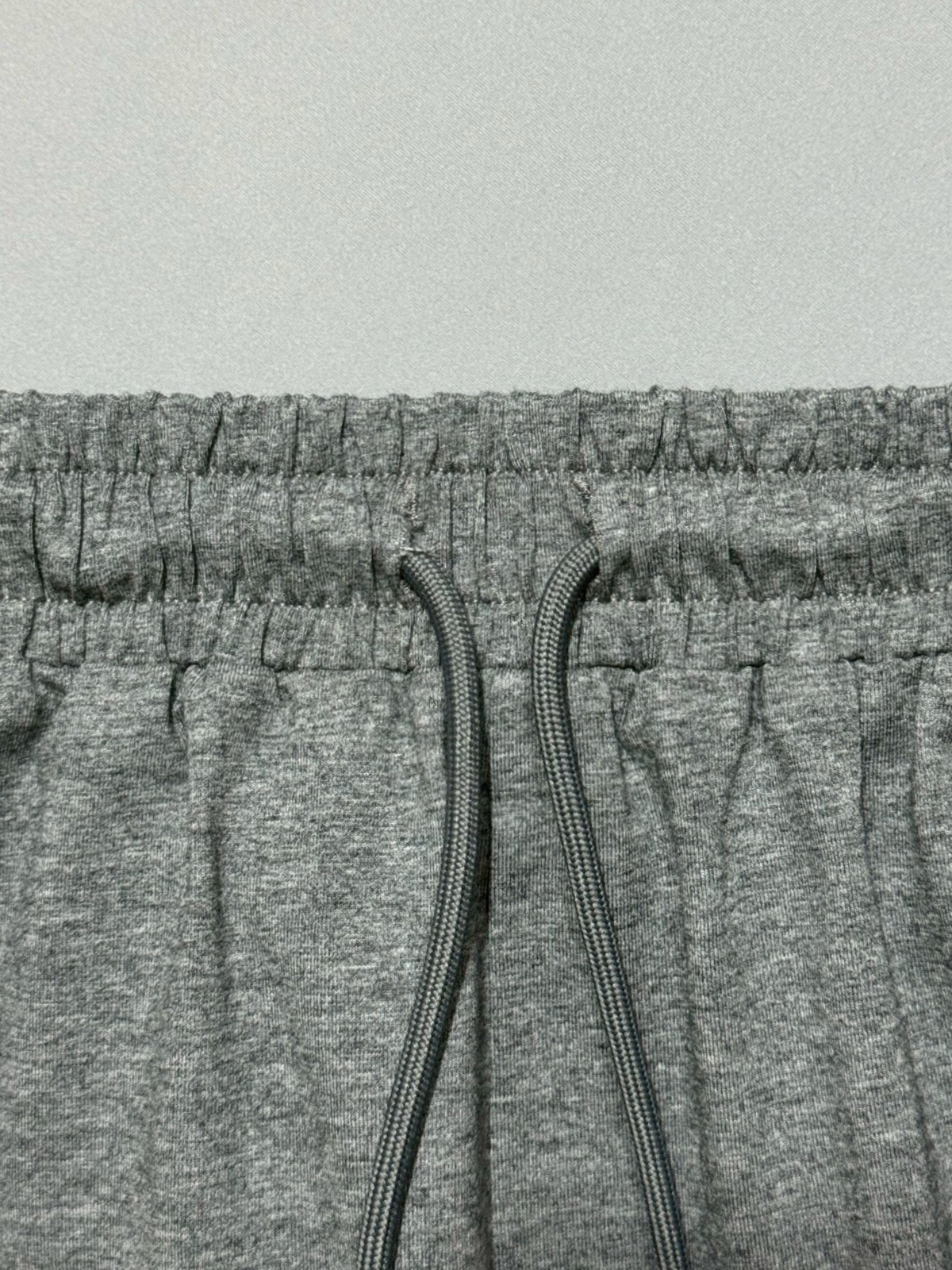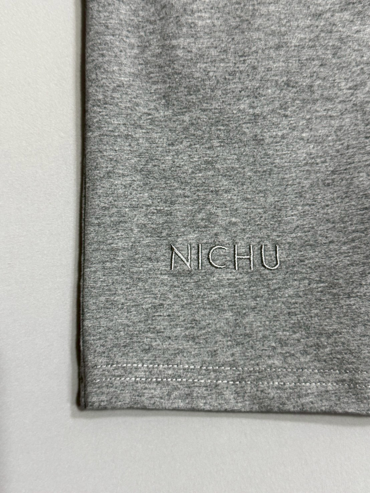 可調式鬆緊帶腰身配抽繩,左側褲口NICHU刺繡字樣。