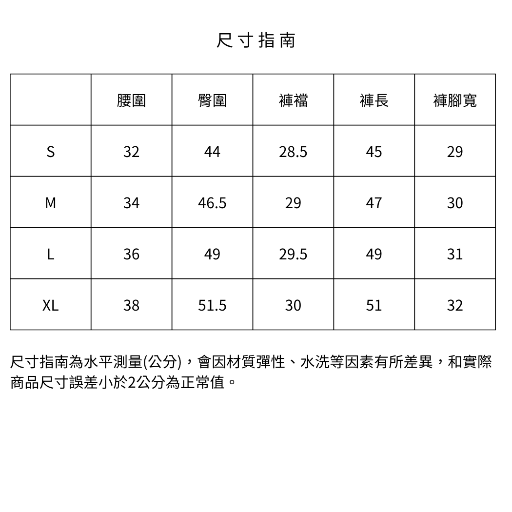 可調式鬆緊帶腰身配抽繩,左側褲口NICHU刺繡字樣。
